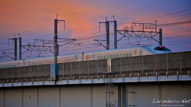 A Shinkansen (bullet train) speeding towards Tokyo.