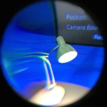 The OculusConfigTool includes a very simple demo scene consisting on a desk with several items on top of it: a potted plant, a lamp, some sheets of paper and pencil, a beverage can, and a pyramid made of stacked cards with some more cards lying around it. The DK2 allows you to move closer and closer to the stack of cards and see the small details. It is also possible to get closer to the lamp, move under it, turn your head up and look at the bulb inside. This adds an incredible degree of realism… until you turn your head away from the camera. The camera is unable to track your position when you turn all the way because there aren’t any infrared LEDs there.