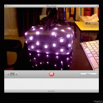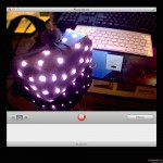 The DK2 fixes this in a very effective way. You put the infrared camera in a location where it can see you move around. The headset tracks your orientation, and the camera tracks your position via a bunch of infrared LEDs in the headset. These infrared LEDs aren’t visible to the naked eye becaise they’re under the headset’s black plastic cover. However, this plastic is not completely opaque. It allows infrared light to pass. This is what the DK2 looks like when looking at it through an infrared camera: