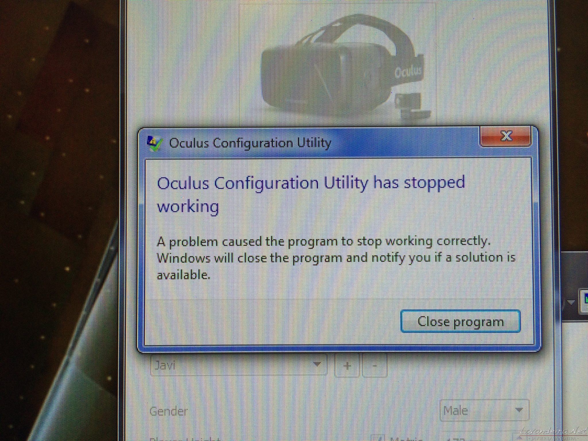I had some trouble both with the Oculus VR service and the Oculus Config Tool. The first problem I had was that the Config Tool was unable to detect the headset, even though it was plugged and switched on. I also noticed that the service was crashing. The solution for this was to kill the Oculus VR service (if it’s still running, right-click on the tray icon, then choose Exit), then manually run the x64 version located in Program Files (x86) > Oculus > Service > OVRService_x64. It looks as if the runtime installer registered the 32-bit version of the service, even though I’m running a 64-bit version of Windows 7.