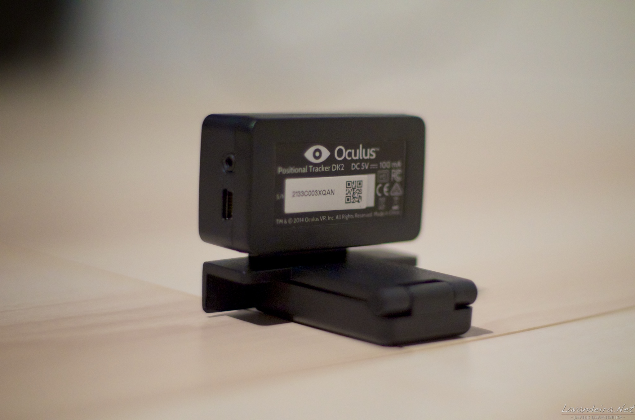 This tiny thing looks like a normal webcam, but the lens is covered by a metallic-looking reflective sheet. On closer inspection we see that besides the USB port there’s a 2.5mm jack port that plugs directly to the DK2’s cable. The documents say that this is to sync the camera with the headset, though I’m not sure about what this syncing implies.