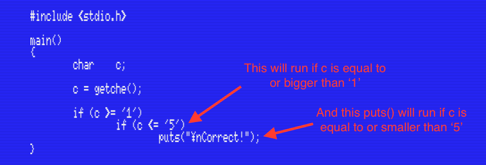 • The second if checks that the character is equal to or lower than ‘5’. If it is then the puts() runs.
