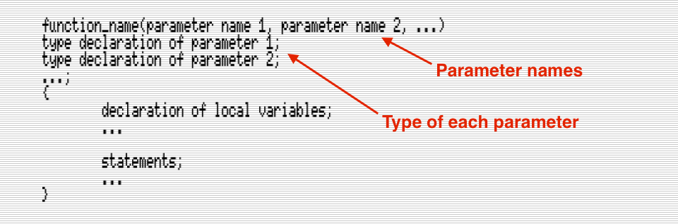 Format of a function definition that accepts parameters (Click to enlarge)