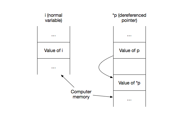 From the compiler’s point of view, accessing the value referenced by a pointer is a two-step process: first, obtain the memory address stored in the pointer variable, and second, access that memory address to retrieve the value.