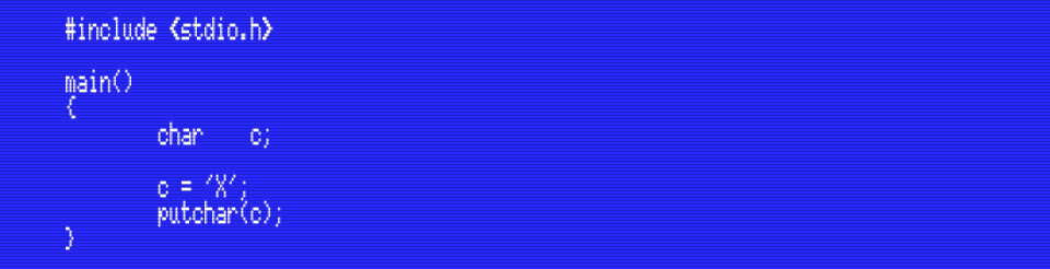 We have already seen this type in some of the examples in previous posts. The program below assigns the character ‘X’ to the character variable c and prints it to the screen using putchar():