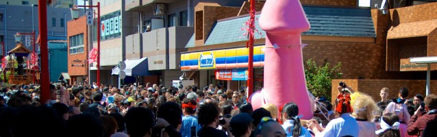 This festival has its origins in the Edo period (1603 – 1868), when the town’s prostitutes visited the shrine to pray for protection against syphilis. Currently the festival is dedicated to fertility and it collects funds for HIV research.